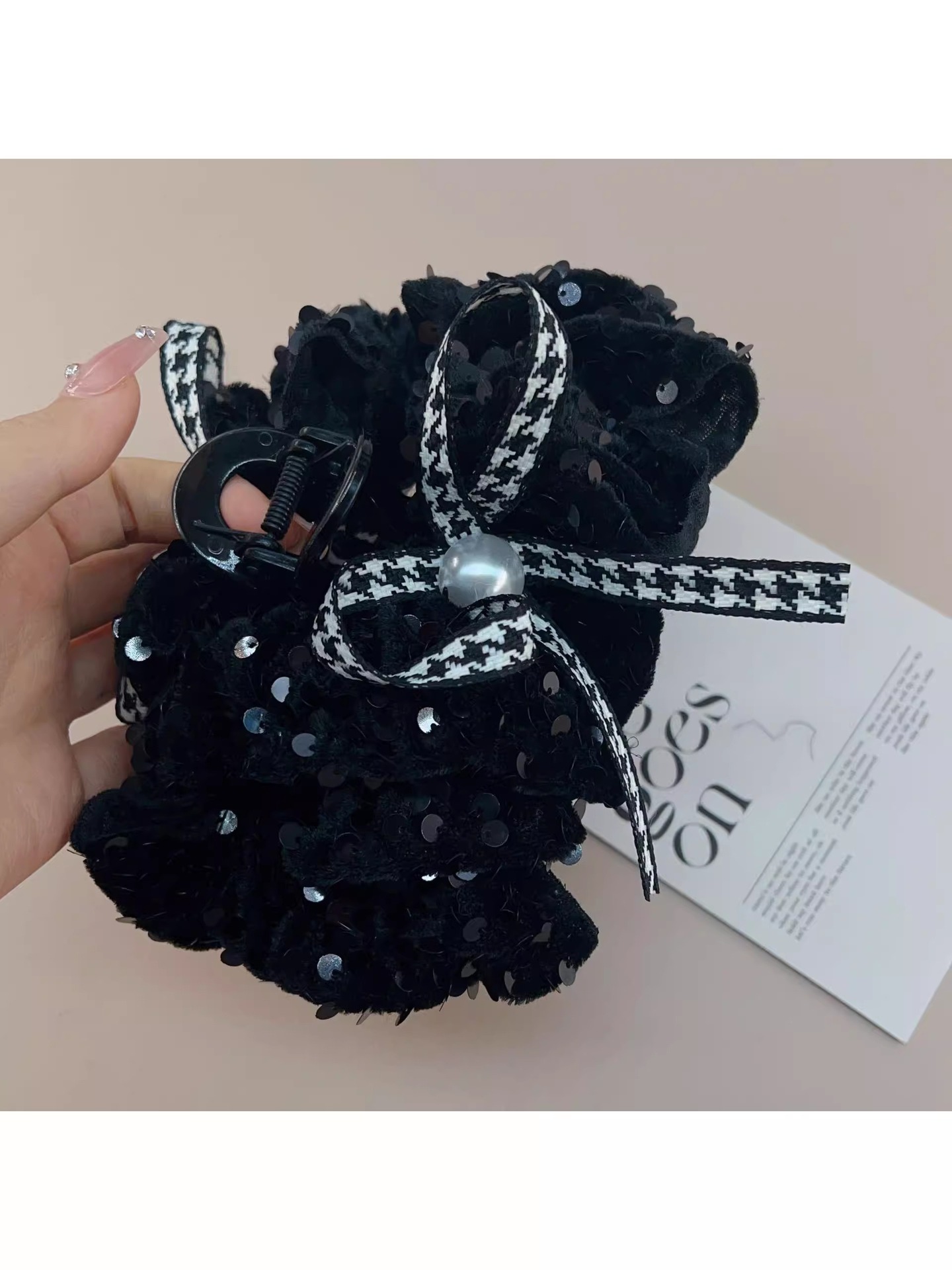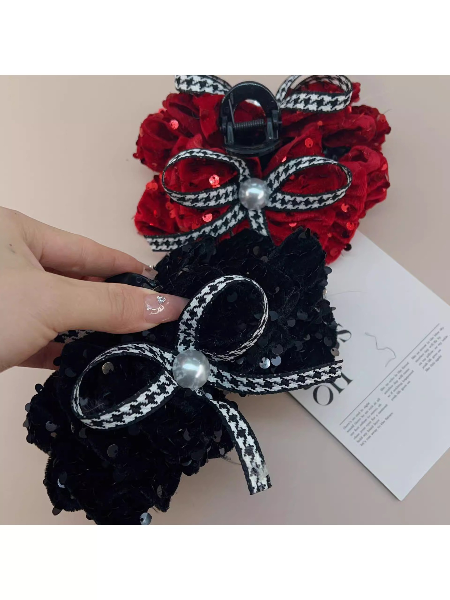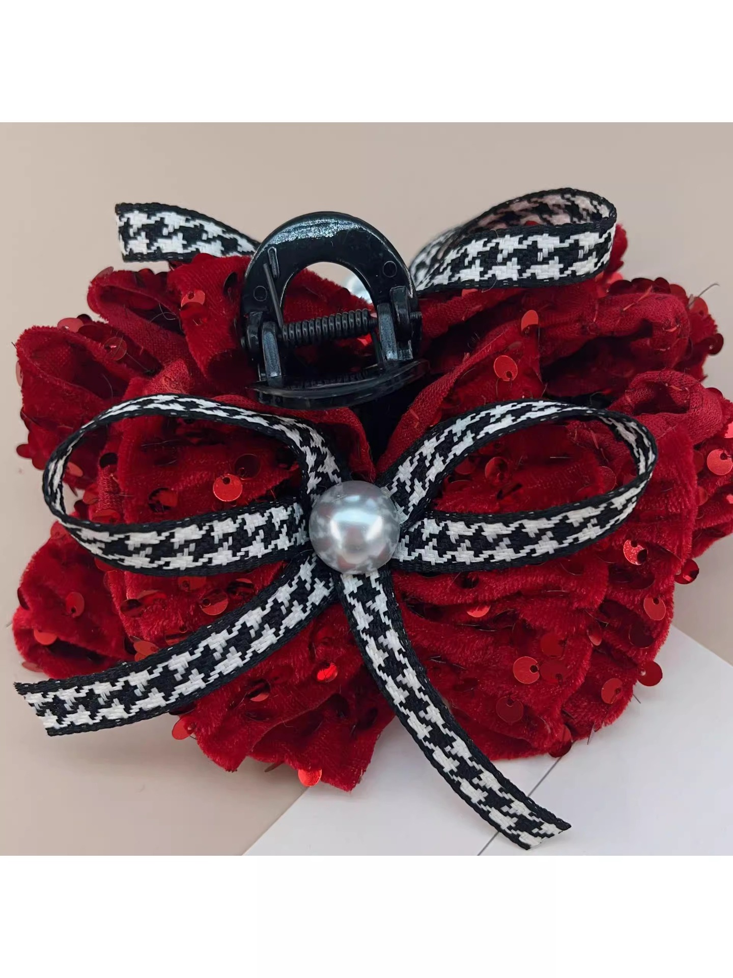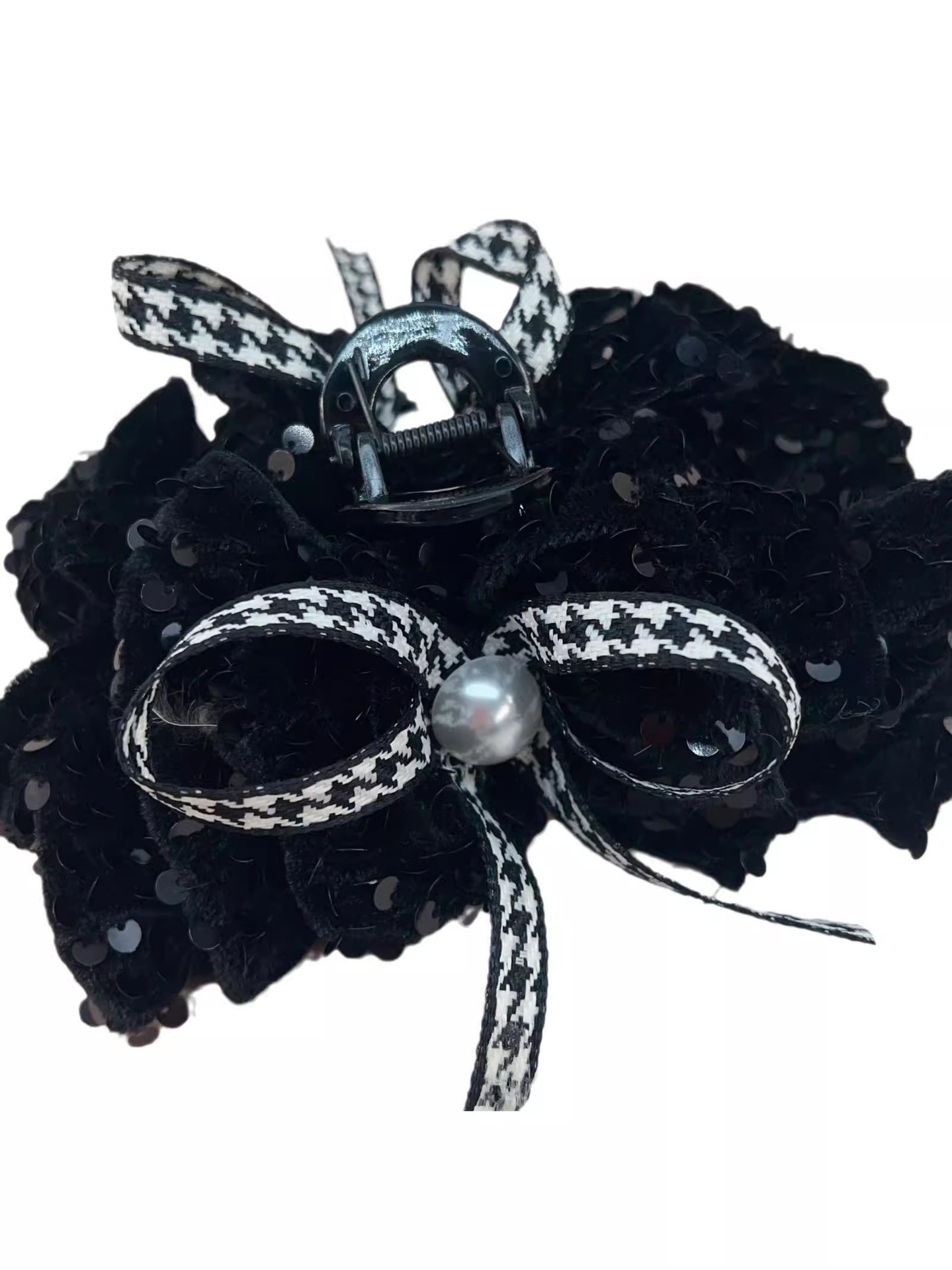 French High Quality Bow Grip French Vintage Plaid Hair Grip Black Velvet Tray Hairpin 2024 New