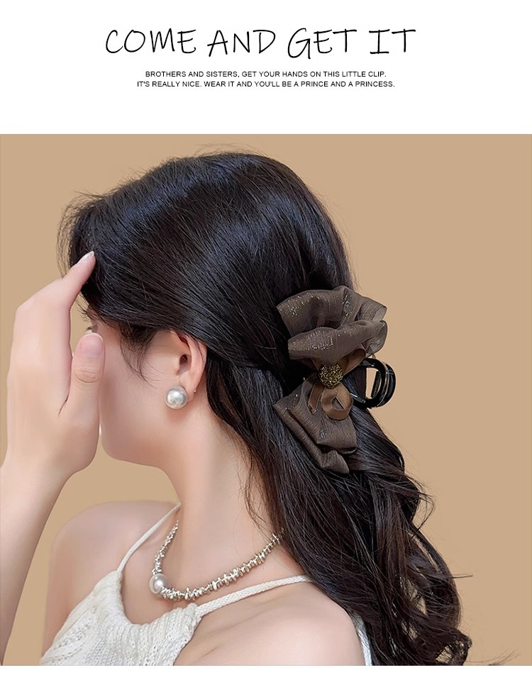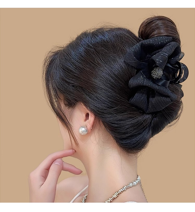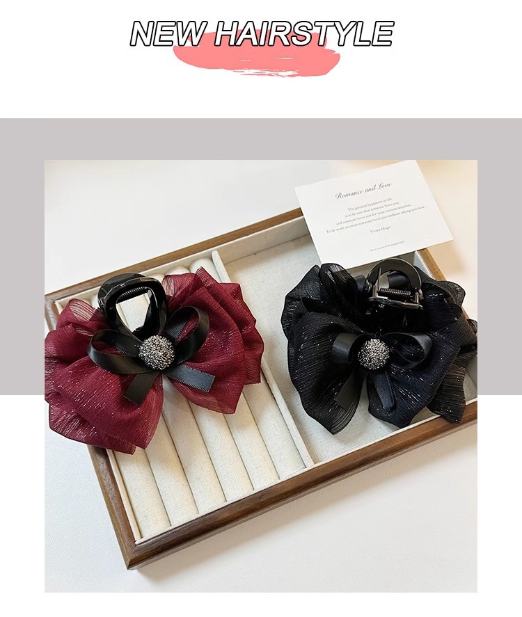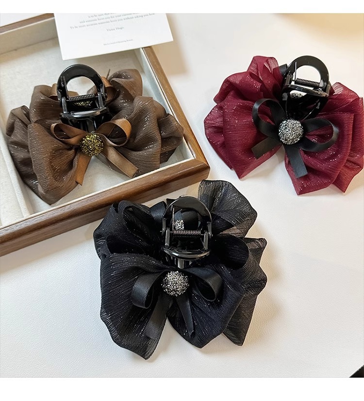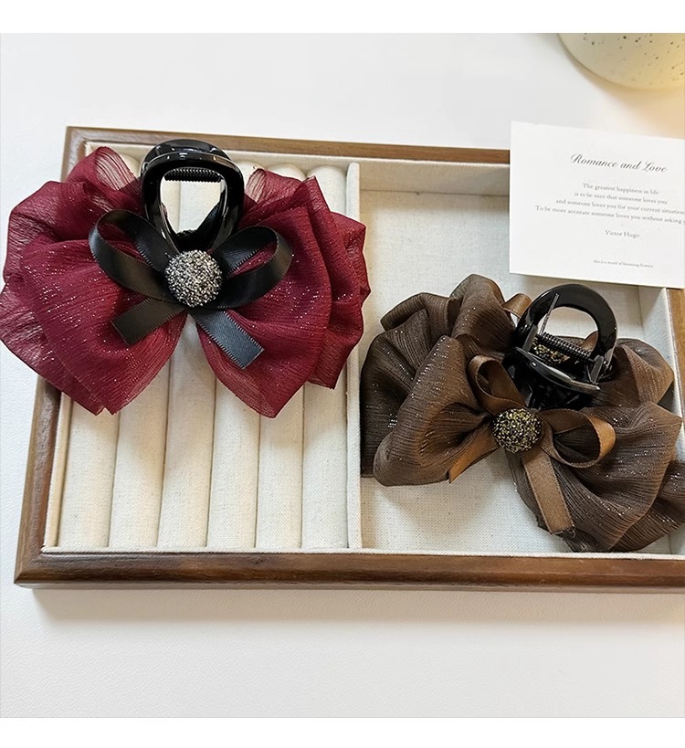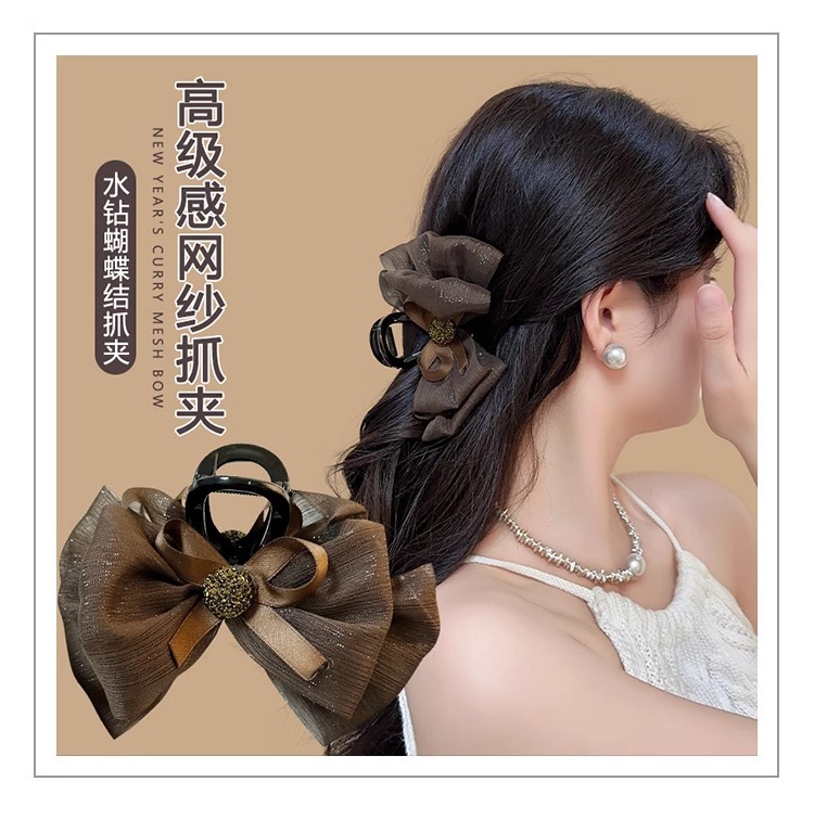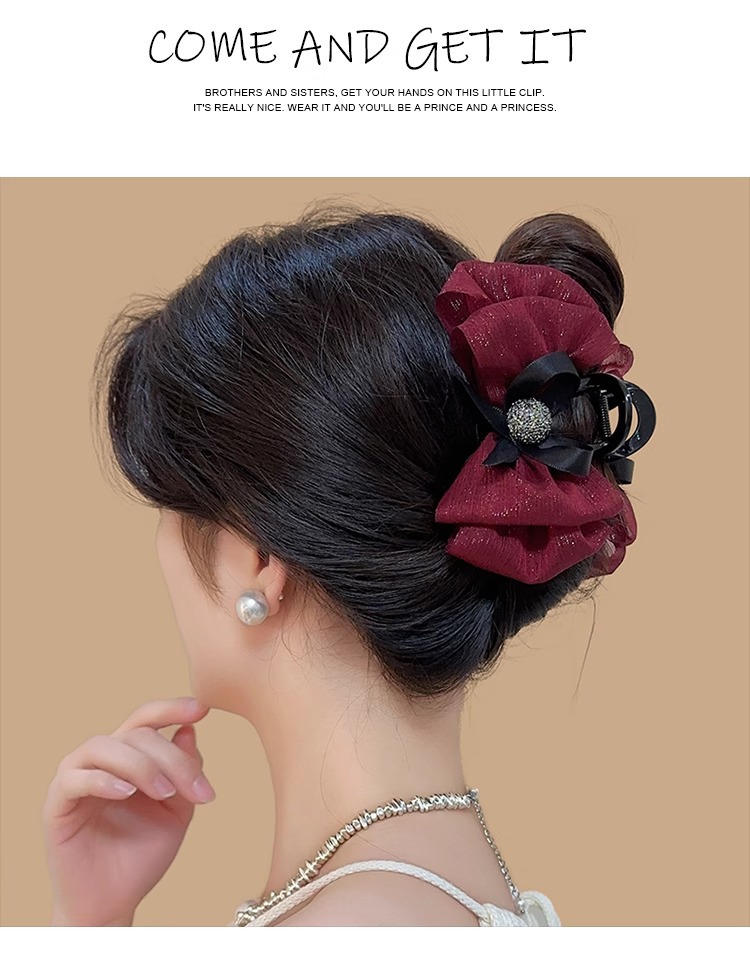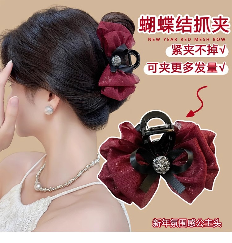 Red New Year Hair Accessories Net Gauze Bubble Bow Clip Korean Elegant Hair Clip Shark Clip Advanced Sense