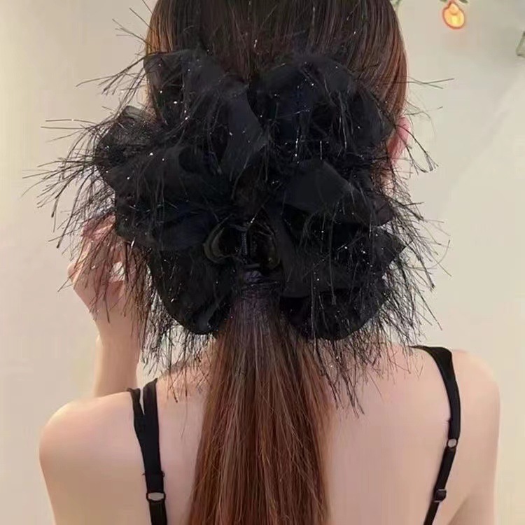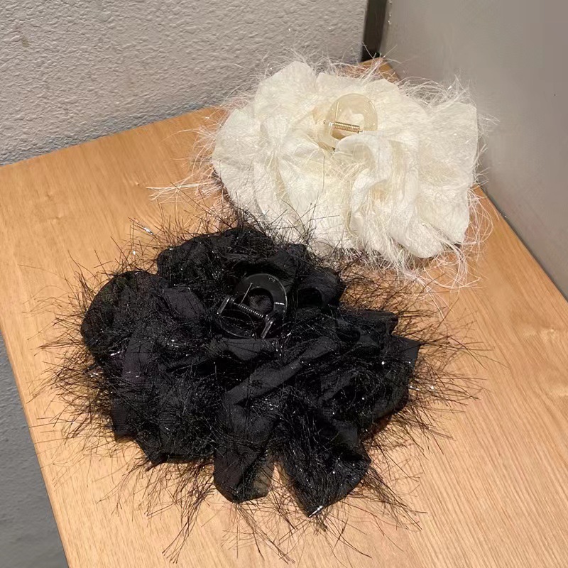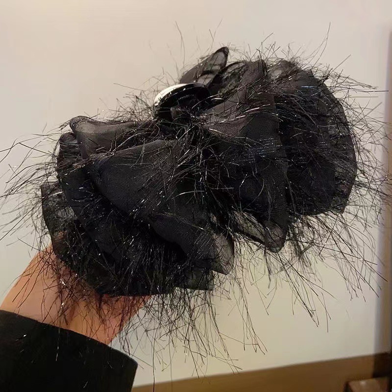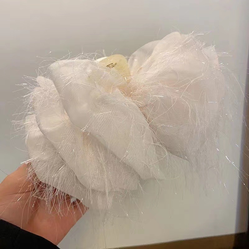 Tassel Mesh Bow Hair Clip Women's Head Large Feather Grab Clip Premium Touch Shark Clip Hair Measuring Headpiece