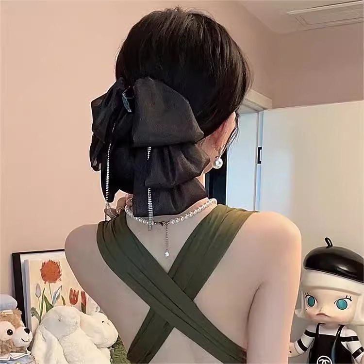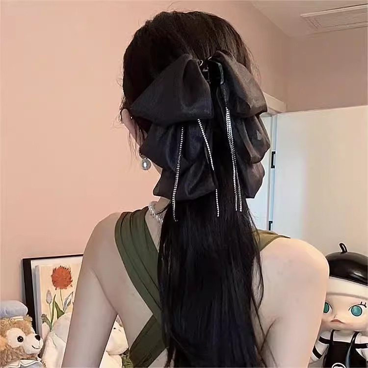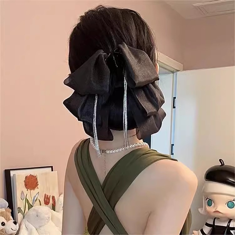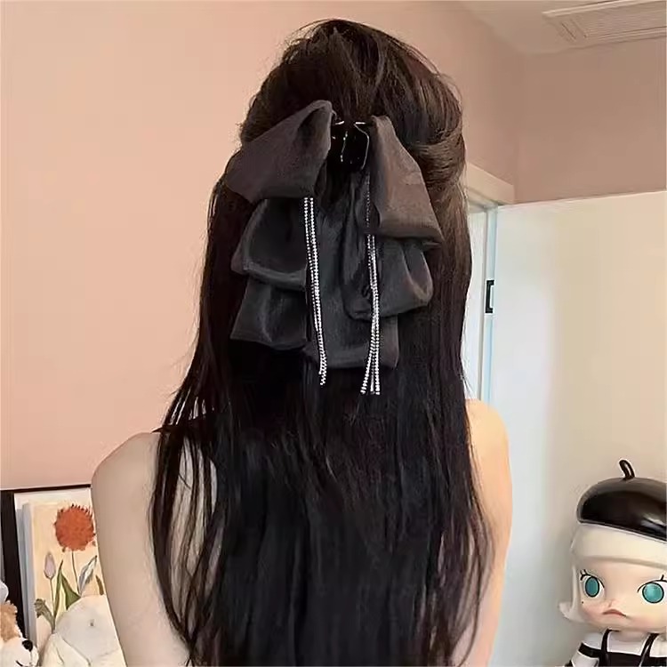 Vintage Fringe Streamer Bow Hair Accessories 2024 New Face Small Back Head Hair Clip Grab Clip Female Shark Clip