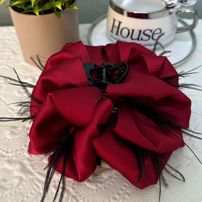 Tassel mesh bow hair clip Women's head large feather grab clip Premium touch shark clip hair measuring headpiece