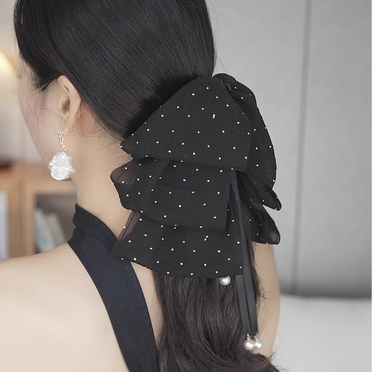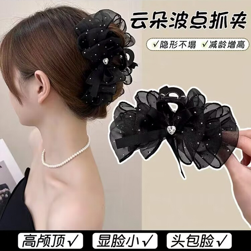 Premium sense Cloud Dot mesh clip Female Full Star rhinestone bubble back head shark clip bow hair clip