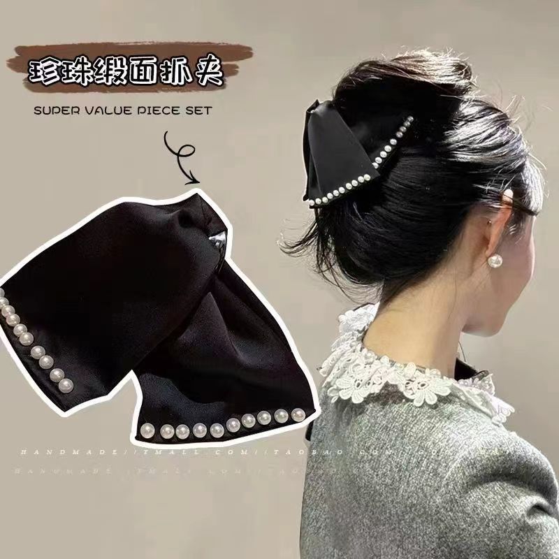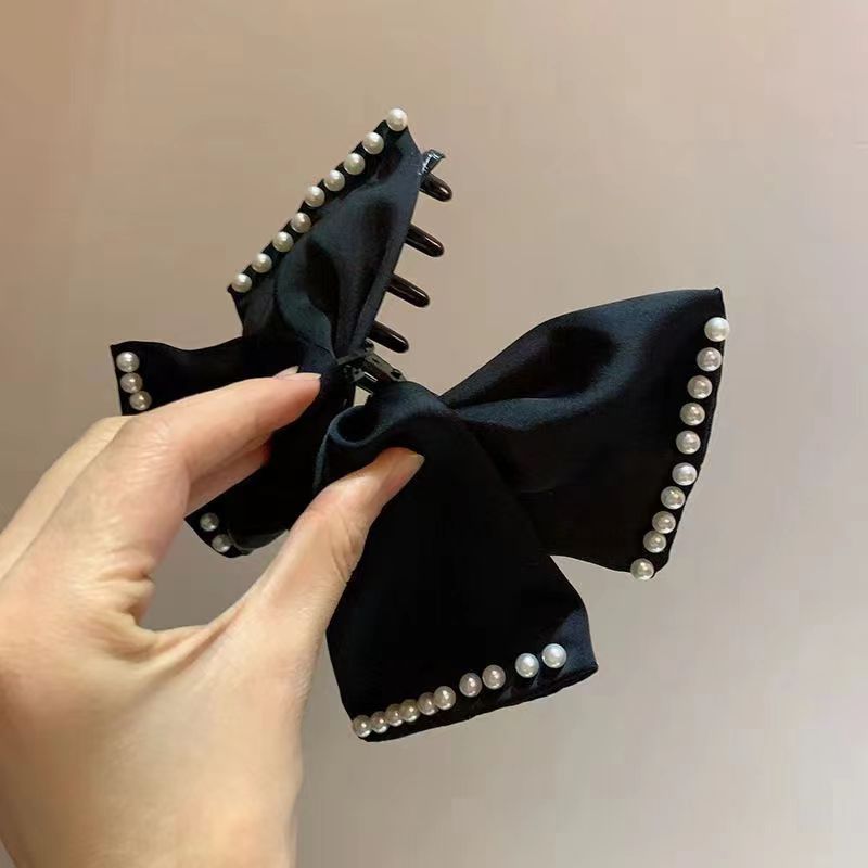 Superior sense AB bow grab clip women's small fragrant style large hair clip temperament back head bun hair shark clip fascinator